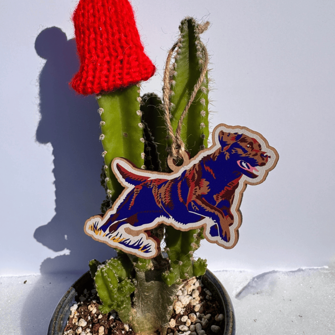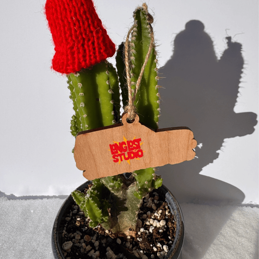 Ornaments are aprox. 3" wide and come with twine to hang, with the studio logo printed on the back.