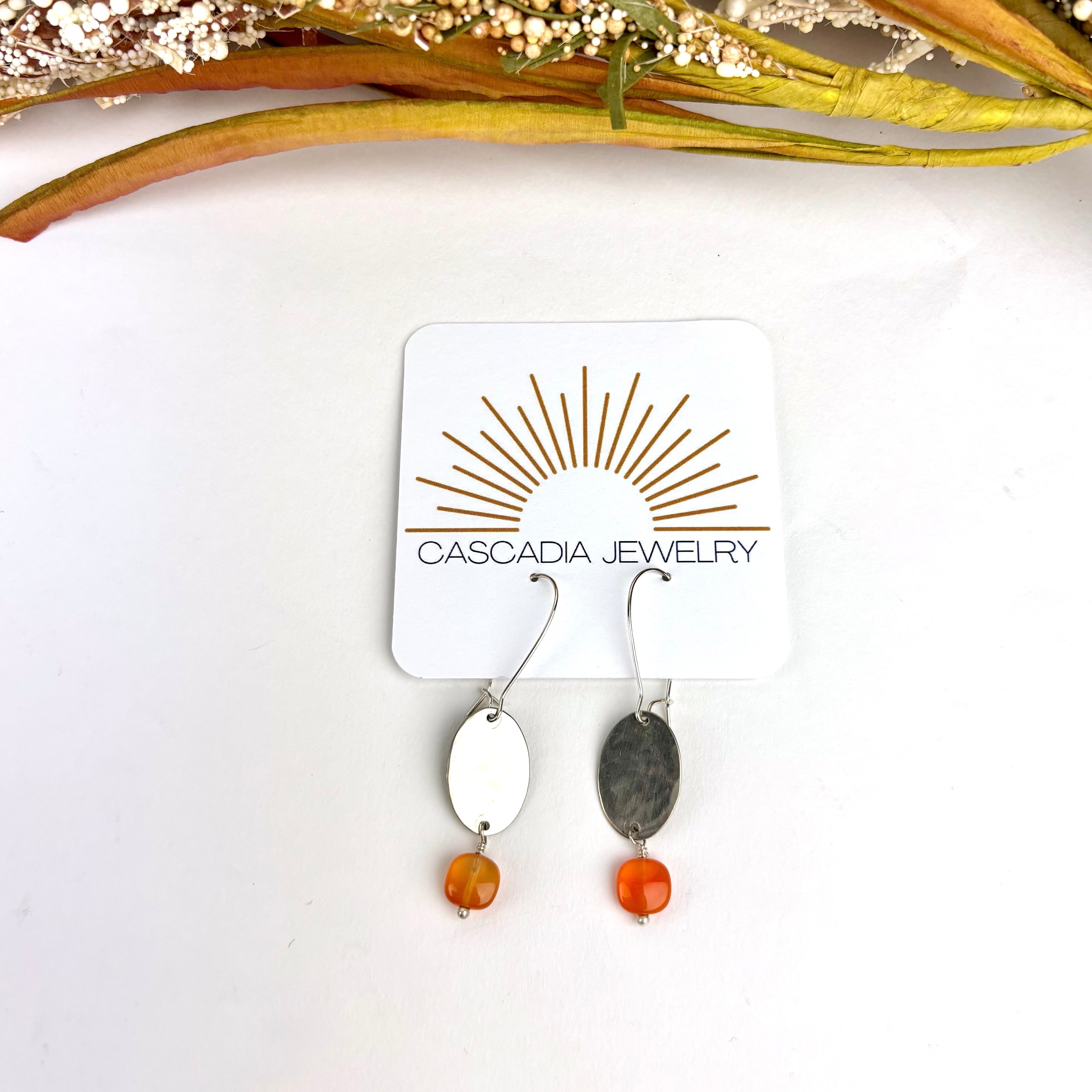 Geometric Shape + Stone Hammered Metal Earrings